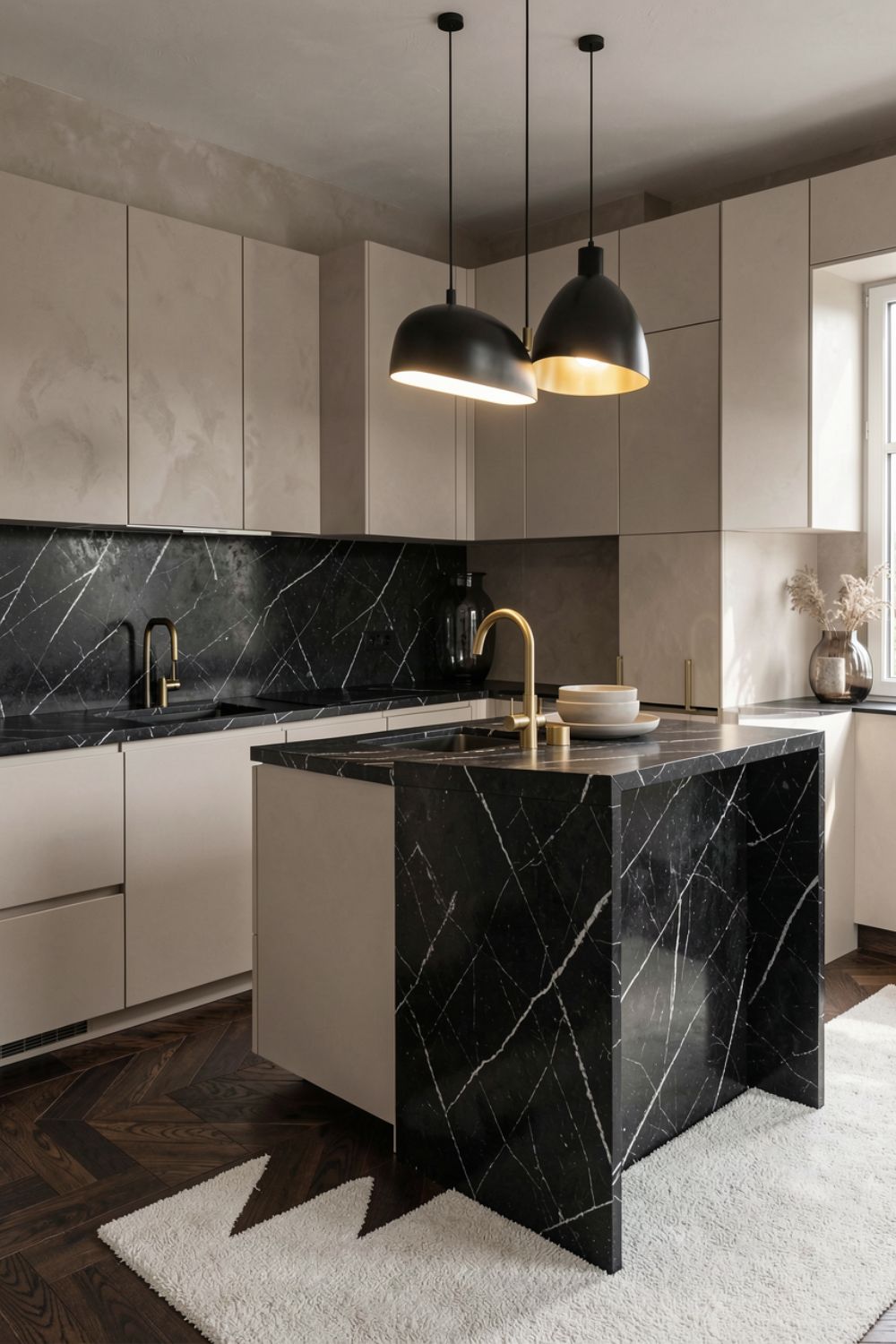 Dramatic Black Marble with Soft Veins for an Editorial Kitchen