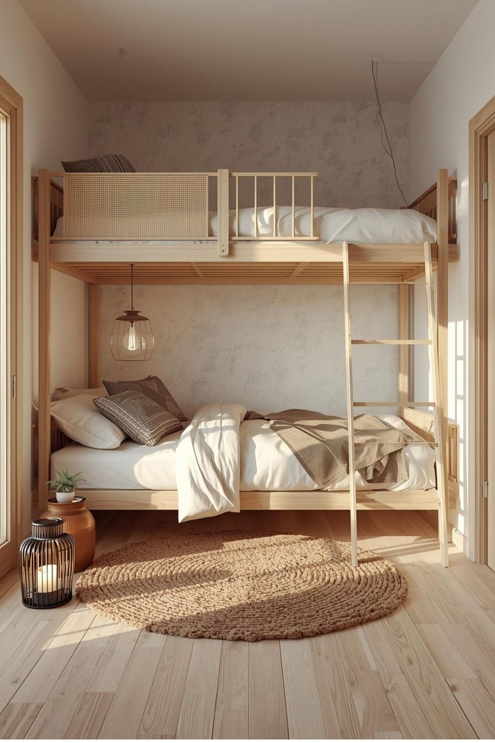 Japandi Loft Bed With Woven Textures and Low-Contrast Neutrals