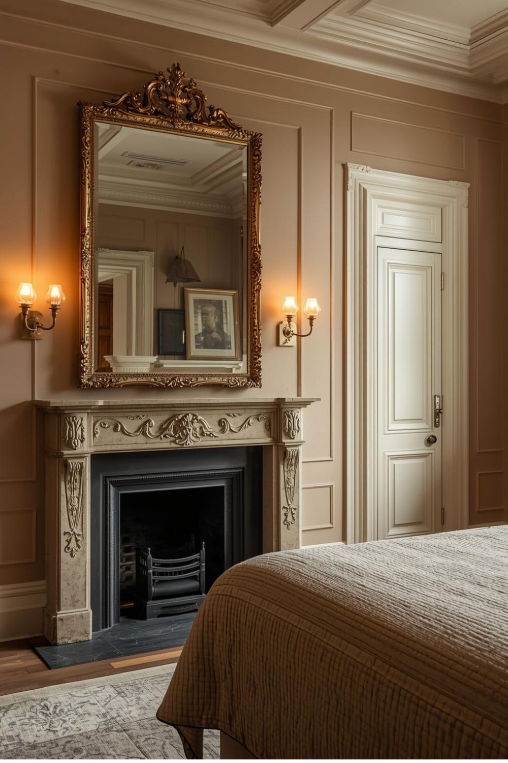 Nothing says Victorian like a proper mantel with an ornate mirror above it. A gilded frame reflects light and adds instant grandeur, even in a modest room. Keep surrounding decor minimal just a candle, a small vase, or a stack of books so it feels elegant and restful. This suits period homes especially well and elevates the room without changing furniture.