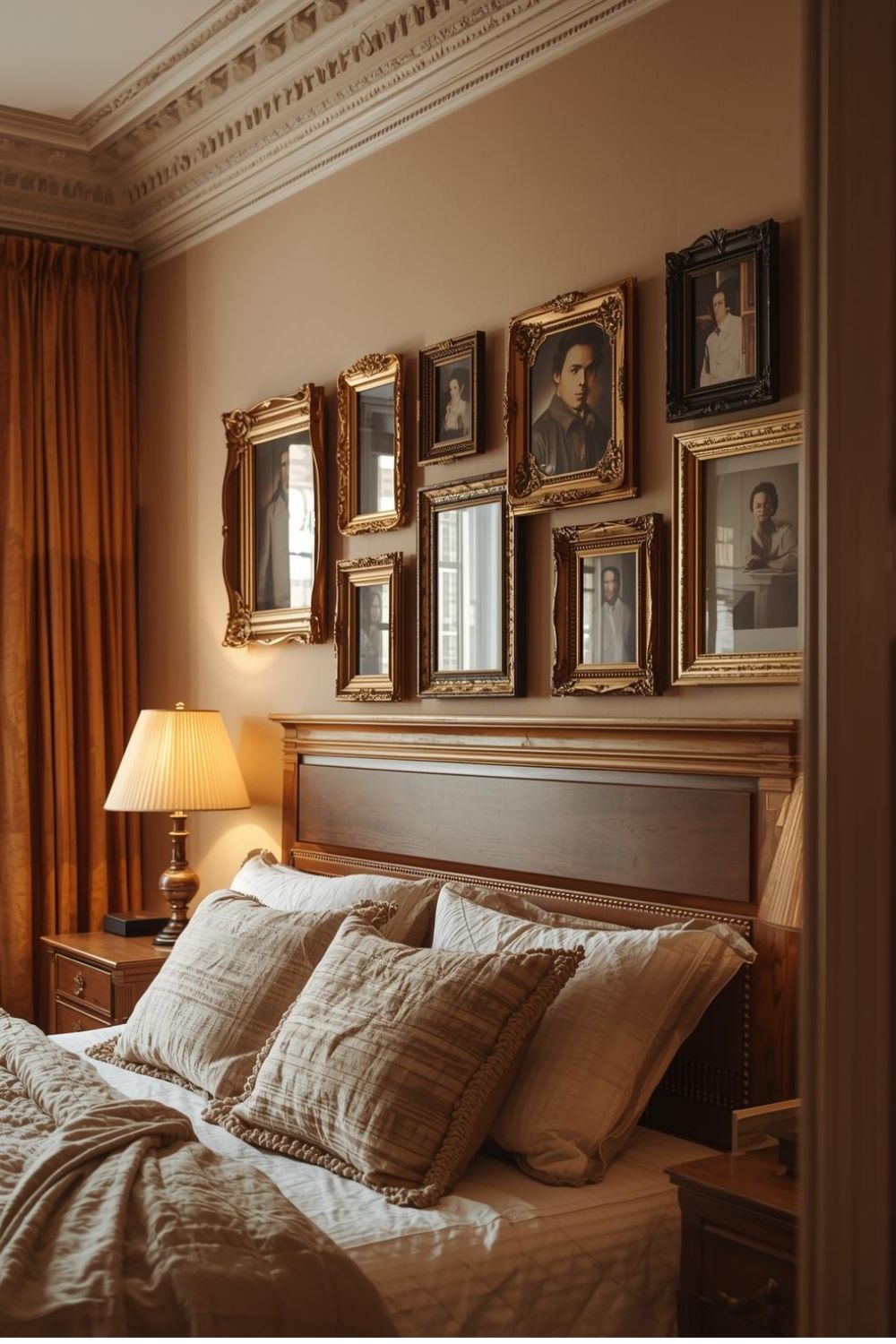 Victorian Picture Rail Gallery with Vintage Frames and Soft Artwork