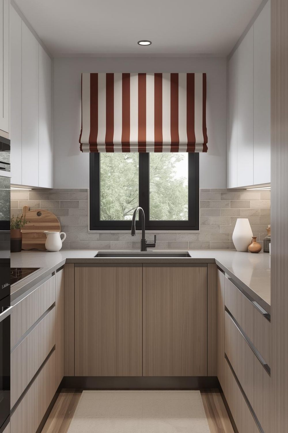Crisp tripe Valance for a Cheerful Modern Kitchen Window